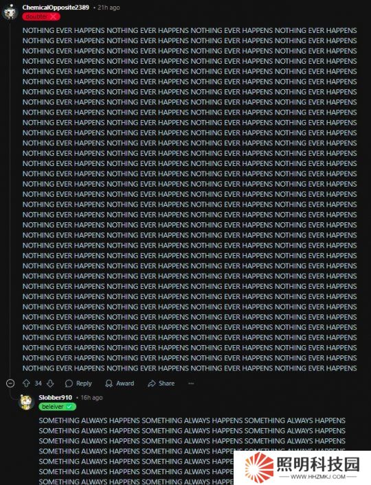 事實上,這整件事進一步加劇了“懷疑者”和“堅信者”之間的對立。我能找到的幾乎每個帖子都展現(xiàn)了這兩個陣營之間近乎神話般的沖突;一位“末日預(yù)言者”在另一個帖子中寫道:“一有機會就要懷疑。” 而代表著人類不屈精神的人回應(yīng)道:“絕不。” 下面是這種沖突更激烈的一種表現(xiàn)形式。