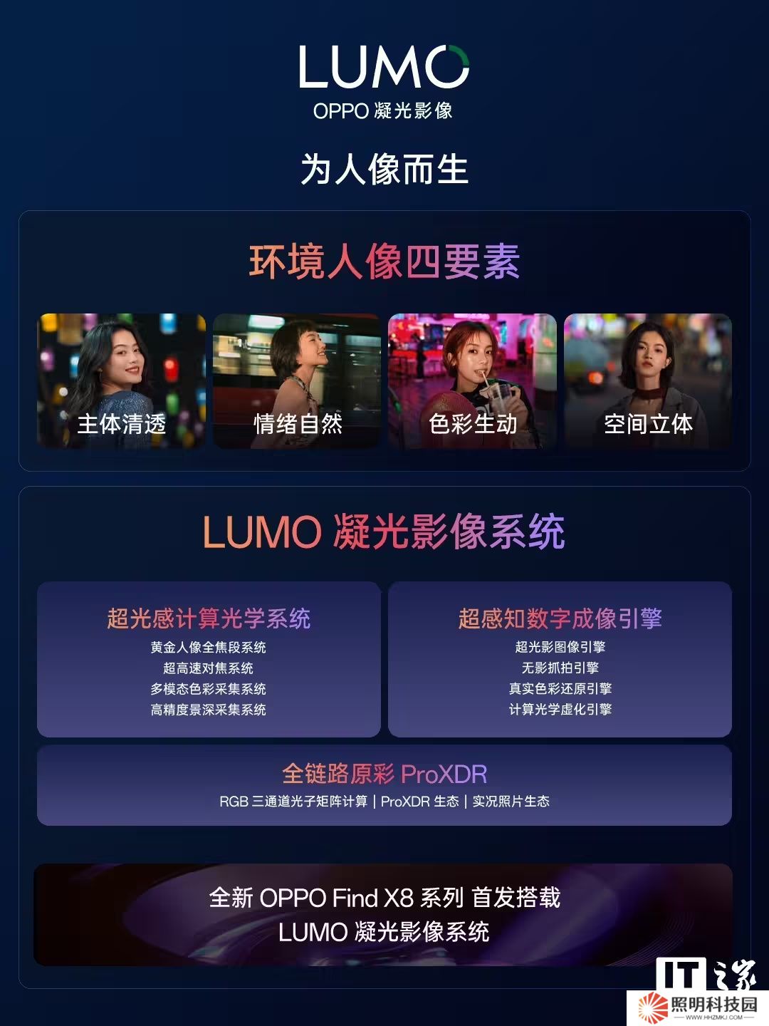 本站 4 月 2 日消息,在今晚(4 月 2 日)的 OPPO 影像科技之夜現(xiàn)場,OPPO 宣布推出全新的影像品牌“LUMO 凝光影像”,號稱為人像而生,由全新的 Find X8 系列首發(fā)搭載。
