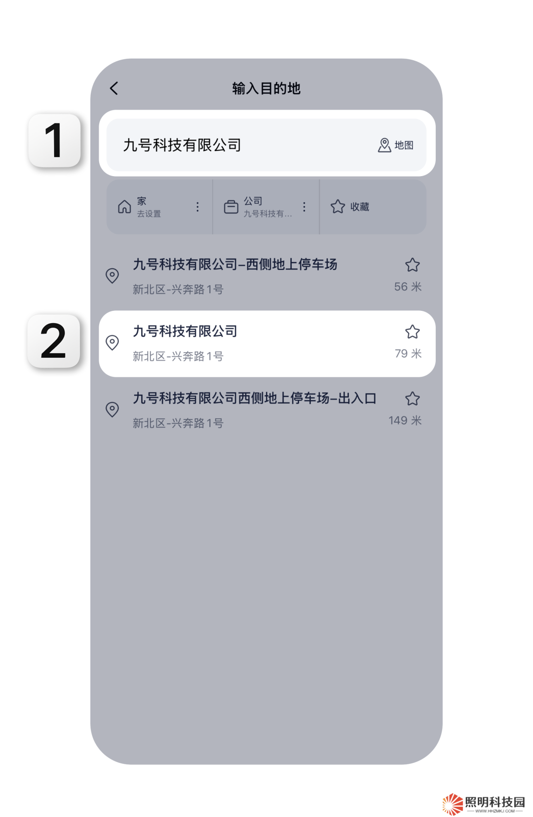 步驟三:在導(dǎo)航欄搜索目的地,并點(diǎn)擊進(jìn)入導(dǎo)航路線選擇界面
