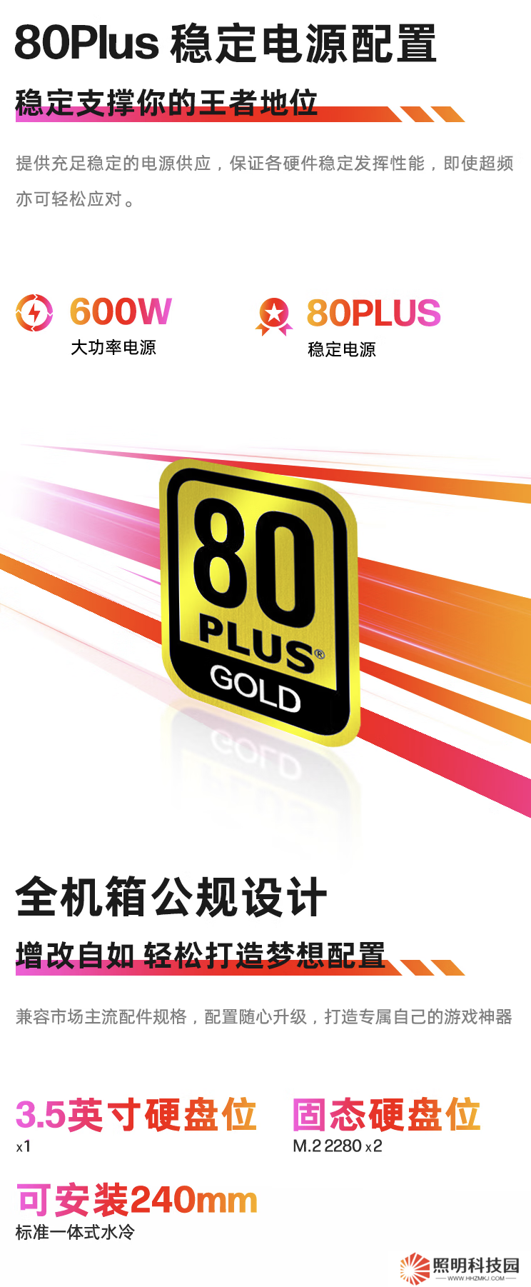 本站獲悉,該機(jī)采用透光鋼化玻璃側(cè)透設(shè)計(jì)機(jī)箱,正面可選玻璃面板/金屬面板,配備ARGB定制燈效。