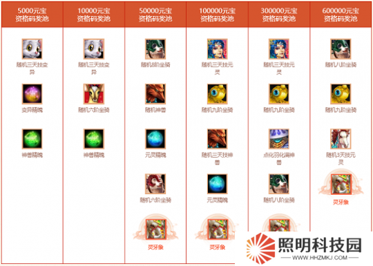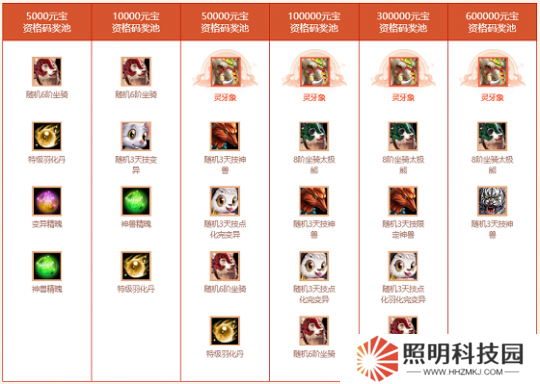 普通版玩家有機(jī)會(huì)贏得八階坐騎靈牙象、隨**階或九階坐騎(僅至尊系列)、隨機(jī)元靈、點(diǎn)化羽化滿的神獸、隨機(jī)變異等獎(jiǎng)勵(lì)。