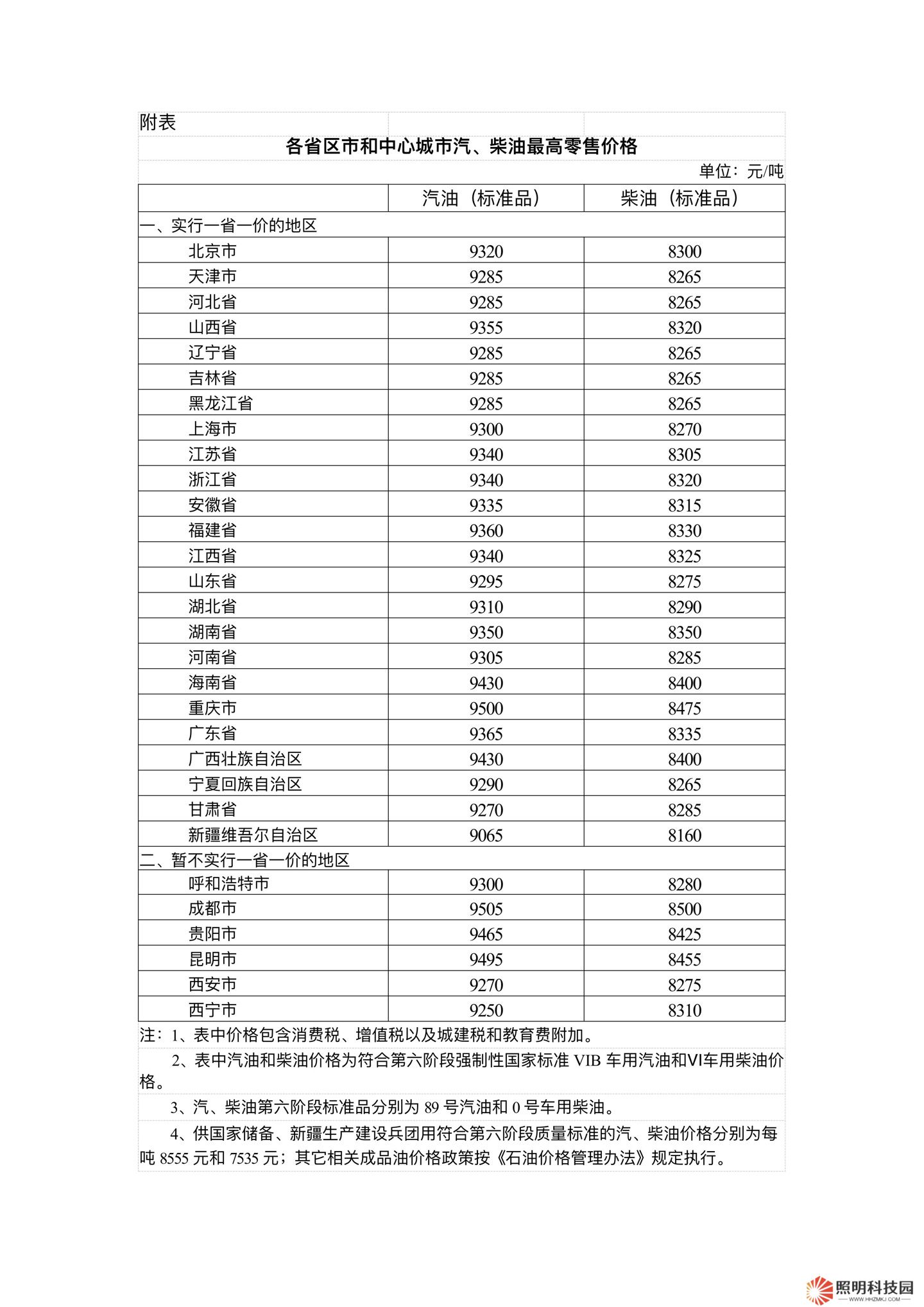 本站附各省區(qū)市和中心城市汽、柴油最高零售價(jià)格如下: