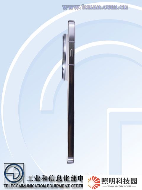 入網(wǎng)機(jī)型采用了白色配色,機(jī)身背面采用居中大圓相機(jī)模組。除了常規(guī)的音量鍵以外,新機(jī)另一側(cè)還配備一個(gè)按鈕,預(yù)計(jì)將帶來更多的功能。