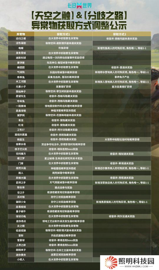 2、調(diào)整了部分異常物的獲取方式,具體可詳見下圖: