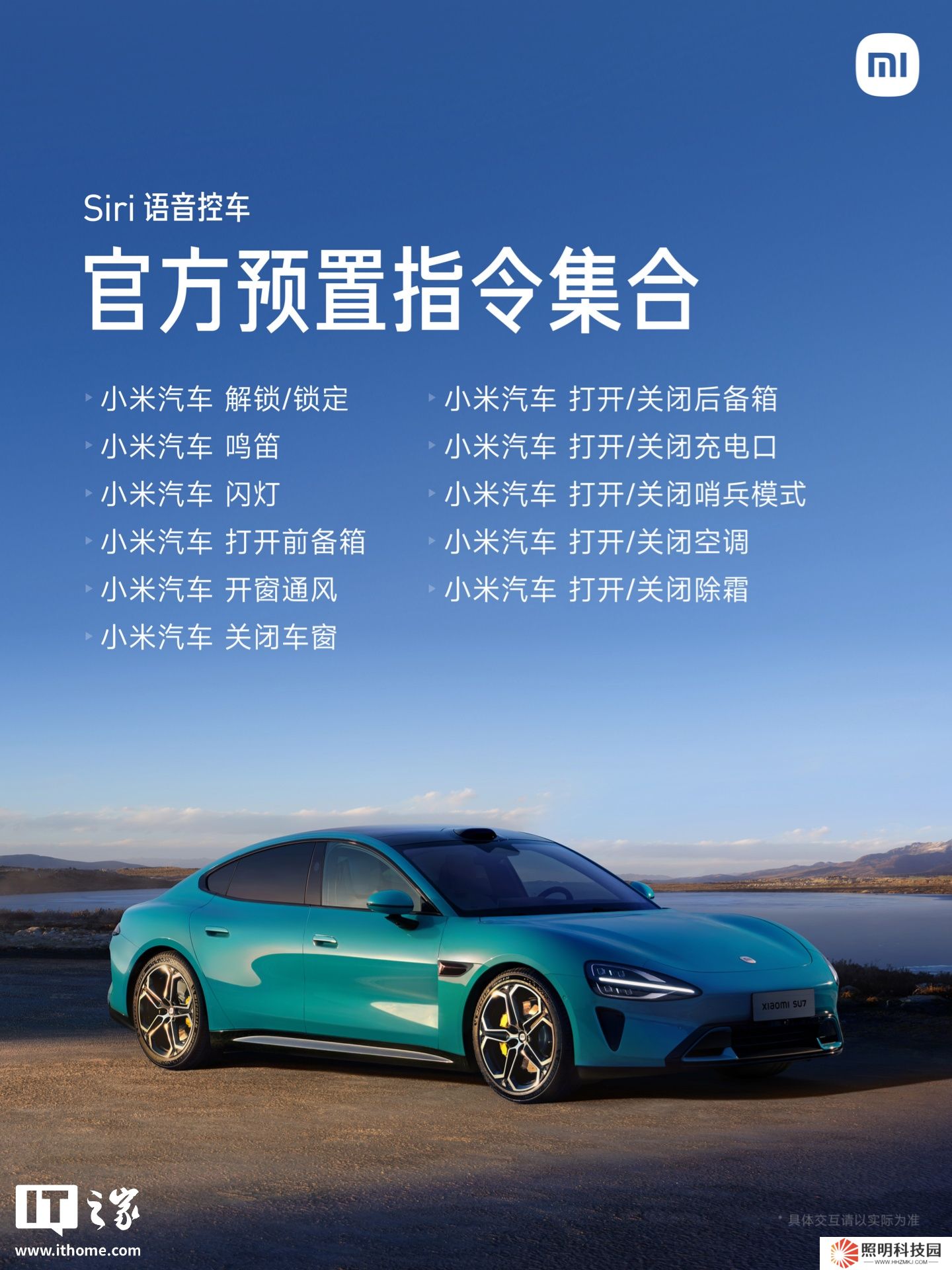 小米汽車官方已預(yù)置 Siri 語(yǔ)音控車部分指令,具體如下: