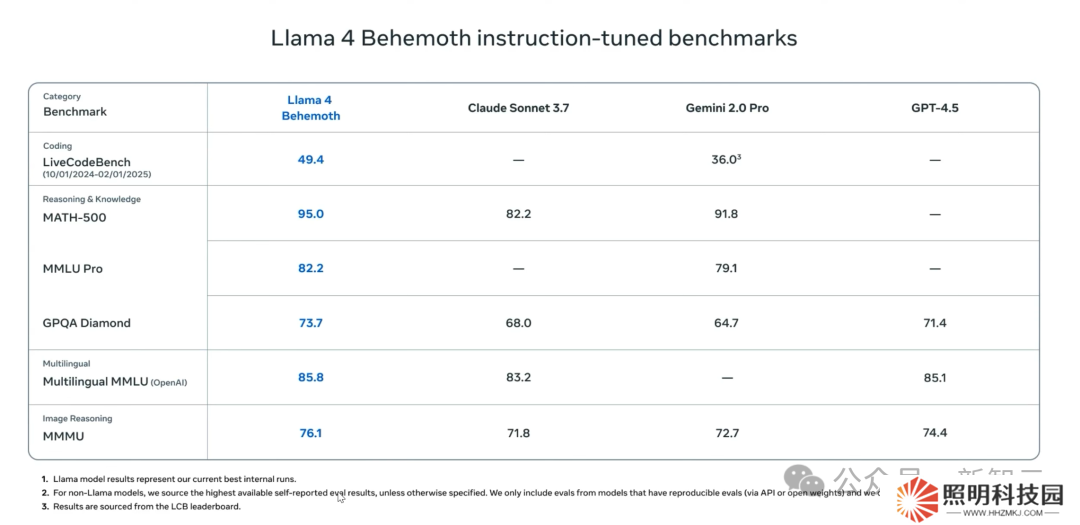 但仔細看腳注,卻說的是 Llama 模型的結(jié)果代表了目前最好的內(nèi)部運行情況,所以很大可能是,Meta 把 Llama 4 跑了 5 遍或 10 遍,取了其中的最好結(jié)果。