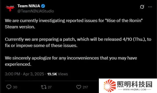 開(kāi)發(fā)團(tuán)隊(duì)Team Ninja 現(xiàn)在已正式向粉絲道歉,他們已推特上在發(fā)布道歉聲明,承認(rèn)《浪人崛起》Steam 版本中問(wèn)題眾多,準(zhǔn)備提供修復(fù)補(bǔ)丁來(lái)緩和玩家們的怒火,該補(bǔ)丁將于 2025 年 4 月 10 日發(fā)布。