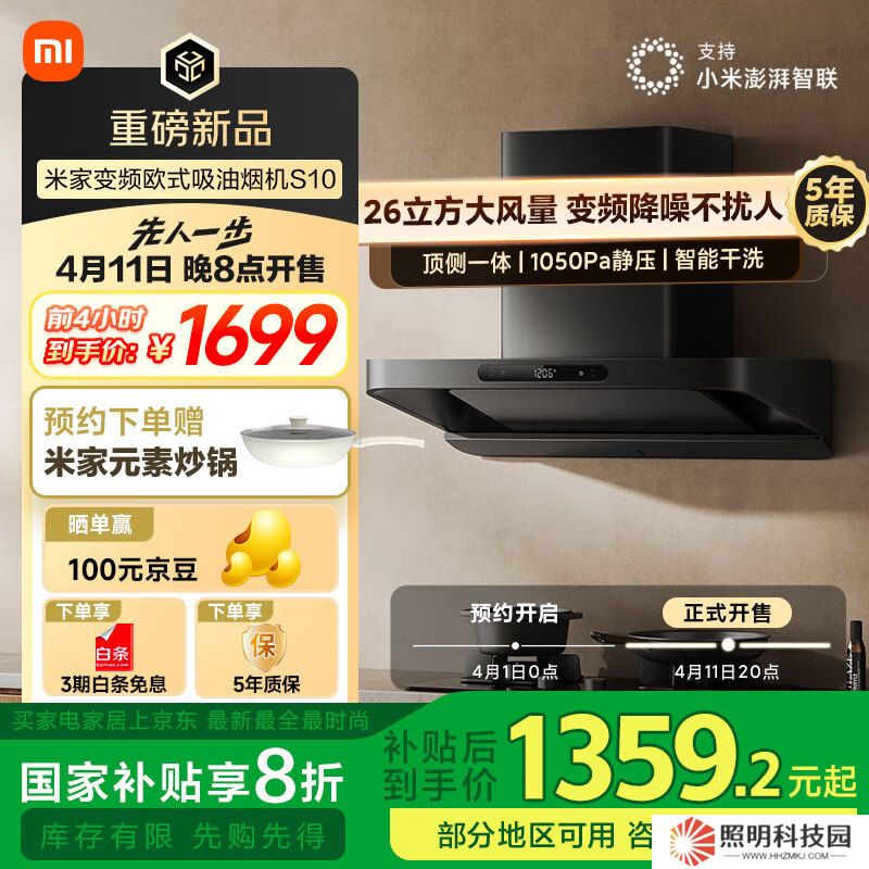 本站 4 月 4 日消息,小米米家智能變頻歐式吸油煙機(jī) S10 現(xiàn)已在京東平臺上架并開啟預(yù)約,4 月 11 日晚 8 點(diǎn)開售,前 4 小時到手價(jià) 1699 元,補(bǔ)貼后到手價(jià) 1359.2 元起。