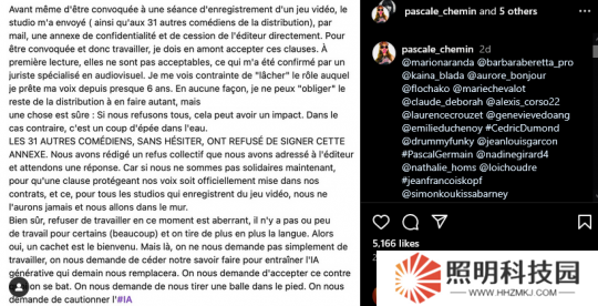 “我現(xiàn)在要被迫放棄我已經(jīng)配音了近 6 年的角色。我無論如何也不可能強(qiáng)迫其他演員也這么做,但有一件事是肯定的:如果我們都拒絕,可能會(huì)產(chǎn)生影響。否則,一切都將是徒勞?!?/p>