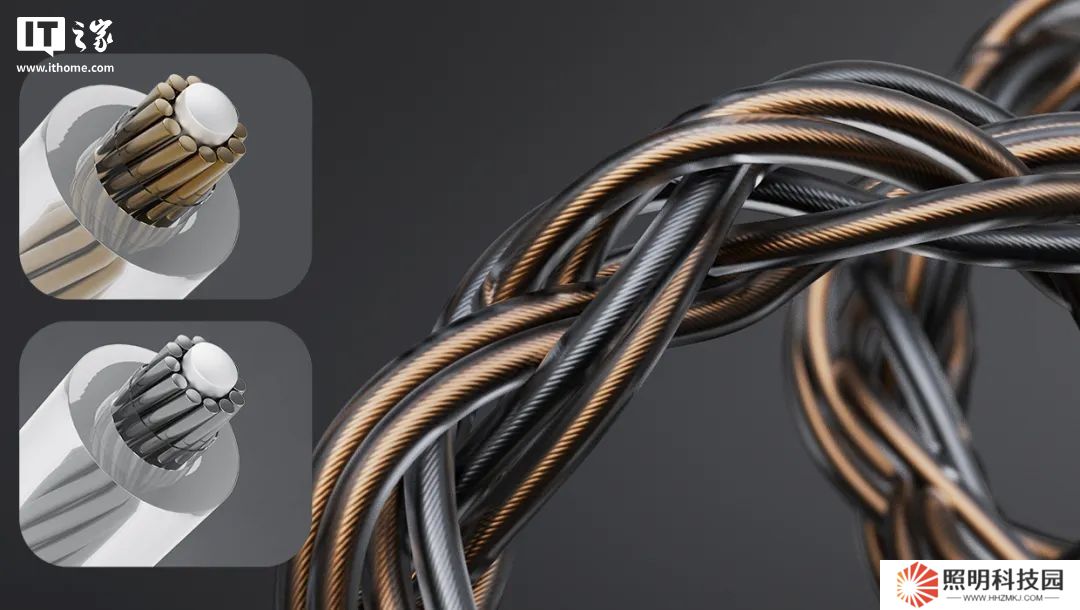 線身由 8 股 HIFI 專用特質(zhì)線編織而成,單晶銅線負(fù)責(zé)電流傳輸,單晶銅鍍銀線負(fù)責(zé)數(shù)字傳輸。