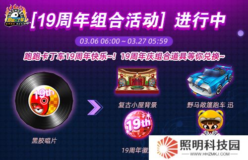 使用“黑膠唱片”,參與3月6日 06:00至3月27日05:59期間開啟的<19周年組合活動>,將可兌換包括“野馬敞篷跑車 迅(無限制)”、“復古小屋背景(無限制)”、“復古頭飾(無限制)”、“19周年車牌(無限制)”、“19周年徽章(無限制)”等在內(nèi)的19周年活動道具!