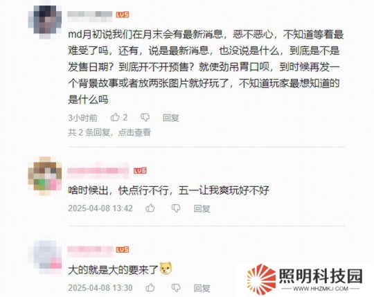 評(píng)論區(qū)有許多玩家表示很期待,有人猜測(cè)是4月25日公布消息,因?yàn)槌绲澗褪窃谀翘熳钥O的。還有人稱官方宣發(fā)吊胃口,趕緊公布發(fā)售時(shí)間。有玩家說(shuō):“預(yù)購(gòu)什么時(shí)候開始?能不能五一讓我爽玩!”