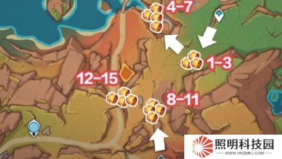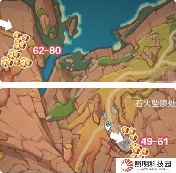 3、沃陸之邦西北(49-80):該區(qū)域的琉鱗石分別在左上方和右下方。