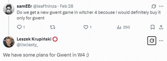最近有粉絲在推特上詢Krupińsk:“《巫師4》中會有新的昆特牌游戲嗎?有的話我肯定買游戲”,對此Krupińsk回應稱:“我們有計劃在《巫師4》中提供昆特牌?!?/p>