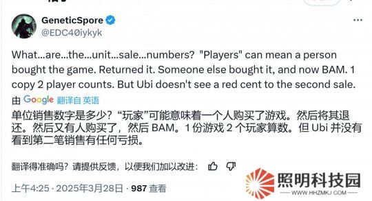 社交媒體上有玩家解釋說(shuō):“玩家”可能意味著一個(gè)人買了這個(gè)游戲,然后退款了。另一個(gè)人又買了同一份游戲,這樣一來(lái),一份游戲就有了兩個(gè)玩家計(jì)數(shù)。但育碧在第二次銷售中一分錢也沒(méi)賺到。