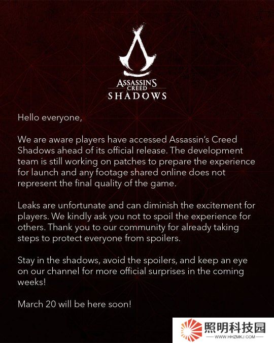 育碧承認(rèn)《刺客信條:影》已偷跑,有人已經(jīng)玩上。但他們正在開發(fā)首日補丁,將在游戲發(fā)售時上線。