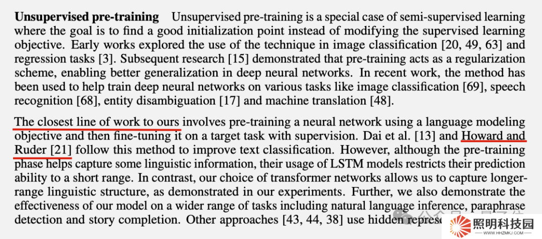 GPT-1 論文原文中,也指出“最接近我們工作的”就是 ULMFiT 與谷歌的半監(jiān)督序列學習(Semi-supervised Sequence Learning)了。