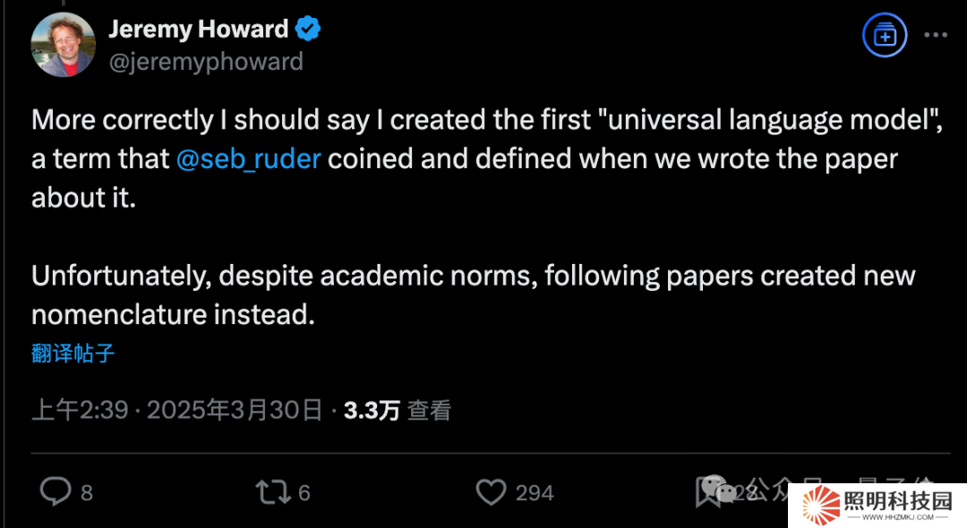 而 Jeremy Howard 本人對此的后續(xù)回應是我們創(chuàng)造了第一個“通用語言模型”,但后續(xù)論文沒有沿用,反而創(chuàng)造了“大型語言模型”這個新術語。