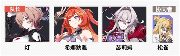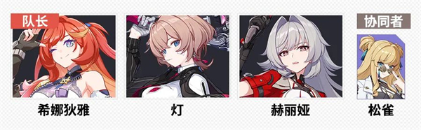 在共鳴隊方面的組合為:希娜+燈+赫麗婭。此時燈作為隊伍中的標記觸發(fā)手。不過由于燈有一部分BUFF只有火傷角色可以享受,所以她對于雷傷的希娜、赫麗婭適配度不高。