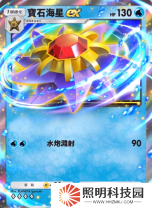 3、另一張強(qiáng)勢(shì)卡牌寶石海星,作為一階進(jìn)化卡,它的血量高達(dá)130點(diǎn),僅需兩個(gè)能量就能打出90點(diǎn)傷害,而且還可以利用免費(fèi)撒退的優(yōu)勢(shì),打斷對(duì)方的進(jìn)攻節(jié)奏