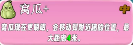 窩瓜現(xiàn)在更聰明,會移動到附近豬的位置,最大距離4米。