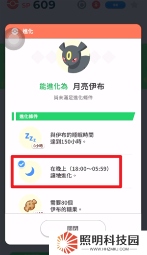 4、其中還會(huì)存在著一些特殊的條件,比如月亮伊布就必須在晚上才能夠進(jìn)化。