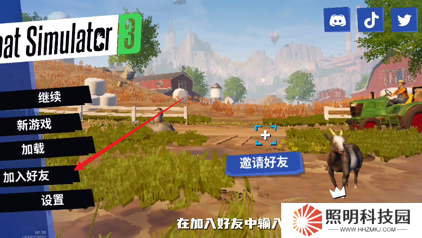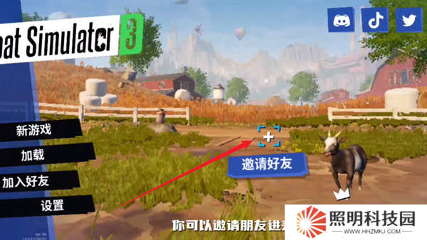 1、玩家們進(jìn)入到模擬山羊3的主界面之后,點(diǎn)擊中間的邀請好友按鍵。