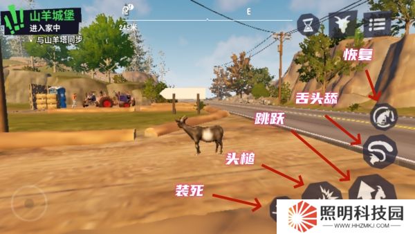1、玩家們進(jìn)入游戲之后將能夠正式的操作自己的山羊來進(jìn)行冒險,通過下方的按鍵來完成各種各樣的任務(wù)。