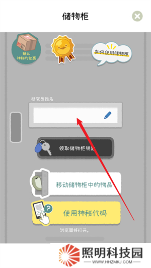 2接著會(huì)進(jìn)入到儲(chǔ)物柜的解謎里面,點(diǎn)擊研究員姓名的輸入框,輸入自己的名字。