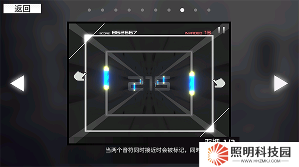 3、游戲采用四面+空間下落式節(jié)奏玩法,玩家需點擊下落的音塊。