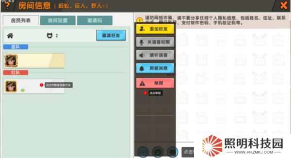 2、在房間信息左側(cè)玩家列表中,找到作弊玩家后點(diǎn)擊信息方塊,然后點(diǎn)擊進(jìn)行【舉報(bào)】。