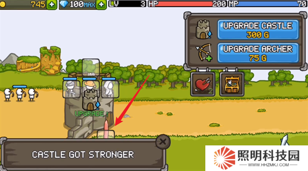7、點(diǎn)擊右上角的城堡升級(jí)按鈕,能夠增加自己城堡的血量。