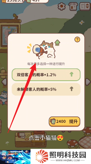 3、跳出宣傳界面之后,點(diǎn)擊上方的小貓。