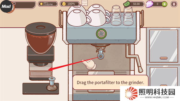 2、完成對話之后會來到廚房之中,開始自己對咖啡的制作。