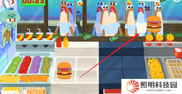 5、然后就可以將制作好的蟹皇堡移動到顧客的位置。