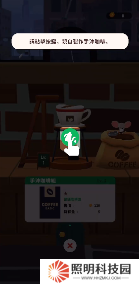 3、然后就會開始制作咖啡的教程,點(diǎn)擊圖標(biāo)進(jìn)行咖啡的制作。