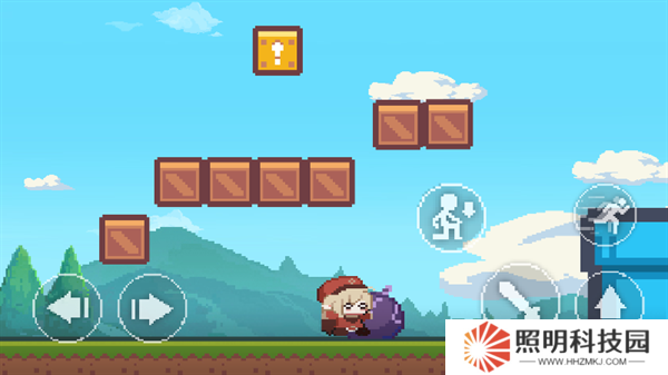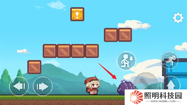 2、進(jìn)入到場(chǎng)景內(nèi)后,玩家們點(diǎn)擊左側(cè)按鍵控制角色移動(dòng),點(diǎn)擊右下角按鍵控制角色進(jìn)行跳躍沖刺以及蹲下攻擊。