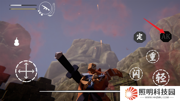 2、進入到場景內(nèi)后,玩家們滑動輪盤控制角色移動,點擊葫蘆恢復(fù)生命值。