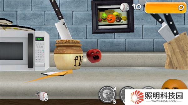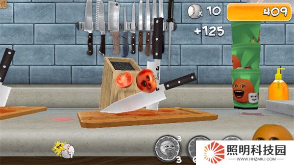 5、水果掉落到菜板上后就會(huì)被切割,就能夠得到分?jǐn)?shù)加成。