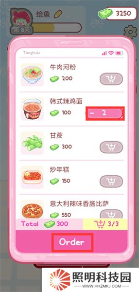 2、接著玩家們?cè)谠邳c(diǎn)餐界面中選擇自己想要的食物加入購(gòu)物車,點(diǎn)擊Order進(jìn)行購(gòu)買。