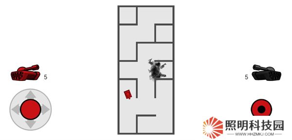 3、進入關卡之后,玩家會與敵人的坦克共處地圖之中,左下角的輪盤進行移動,右下角的按鈕進行射擊,擊中對方就能夠獲得勝利。
