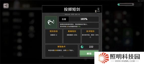 6、后面將涂毒改造4星擊殺111個(gè)敵人解鎖投拋短劍,在獲得涂毒的情況下帶啟動飛鏢和投拋短劍,系統(tǒng)默認(rèn)解鎖多重打擊,因?yàn)槎际俏锢順?biāo)簽所以可以解鎖毒刃。