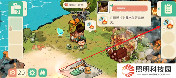 5、與篝火交互之后,將能夠把周圍照亮,從而更加方便的進(jìn)行探索。