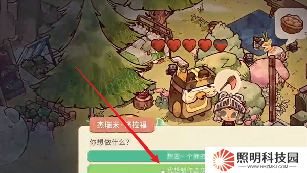 1、玩家們首先需要操控自己的角色來到工匠熊的位置,選擇制作東西。
