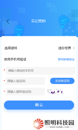 4、忘記賬號(hào)的話,你需要點(diǎn)擊后先選擇迷你世界游戲,要是記得迷你號(hào)所綁定的手機(jī)號(hào)碼,可以輸入手機(jī)號(hào)后再輸入驗(yàn)證碼并點(diǎn)擊確認(rèn)。