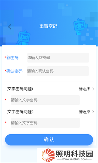 9、然后輸入要重置的新密碼,選擇兩個(gè)文字密碼問題輸入對(duì)應(yīng)答案后點(diǎn)擊確認(rèn)就可以重置密碼了。