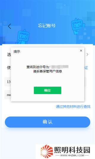 5、如果查詢到手機(jī)號(hào)對(duì)應(yīng)綁定的手機(jī)號(hào)碼,就會(huì)直接彈窗告知對(duì)應(yīng)的迷你號(hào)。