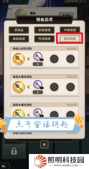 3、蜜話的鑰匙可以在工坊之中進(jìn)行合成,點(diǎn)擊主頁面的【工坊】按鈕就能夠花費(fèi)材料合成鑰匙。