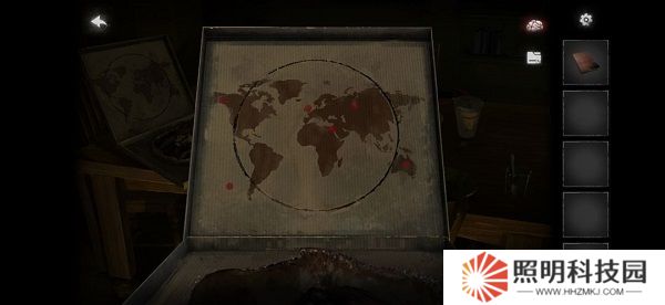 18、來到客廳的餐桌,把圓形紙板放入披薩盒上,獲得世界地圖的線索3。