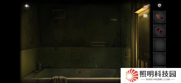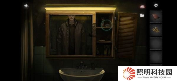 14、到廁所鏡子前,水龍頭左邊用鉗子擰開,出現(xiàn)女鬼,然后背后女子畫像倒地獲得黃色書。